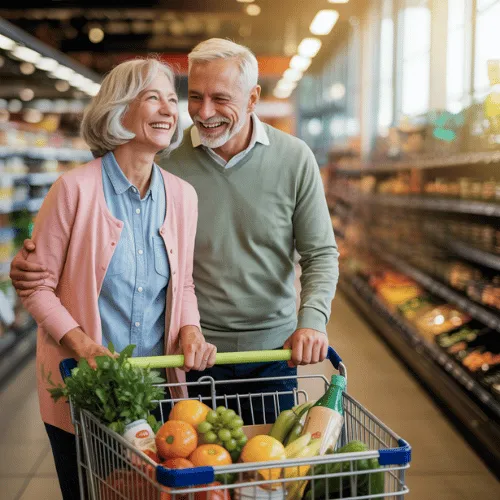 Use coupons, buy in bulk, and explore local senior discounts or cashback apps to stretch your food budget.